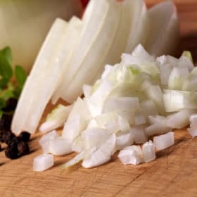 - In einem geeigneten Topf, Pastinaken-Scheiben und die Zwiebelwürfel im Öl andünsten und anschließend mit der Gemüsebrühe auffüllen.